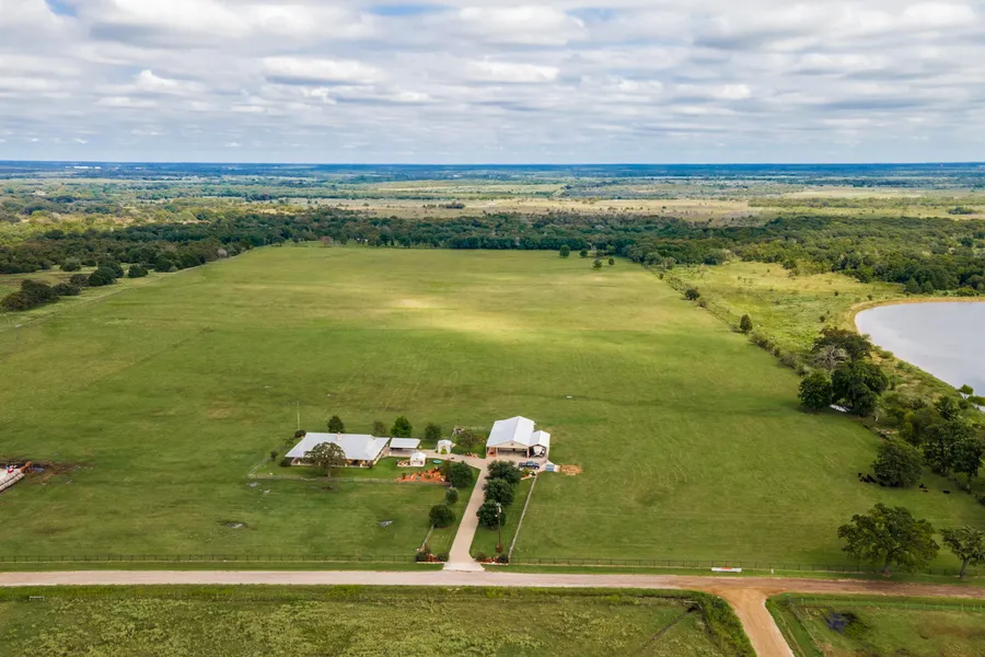 GORGEOUS & METICULOUSLY LANDSCAPED RANCH PROPERTY LOCATED IN THE COUNTRY ON 79 +/- ACRES!! Mature trees & impressive drive-up approaching this lovely & spacious home with wrap-around covered porches. Custom interior with beautiful upscale features & finishes...granite countertops, stone see through dbl WBFP, open floor plan, tall ceilings, picture windows and a massive breakfast bar that overlooks the family room. Two bedrooms with a 3rd possible bedroom upstairs in the floored 12x40 ft. space, 2 elegantly designed bathrooms and a 2 car carport. Home is constructed of all metal with stone facade for custom design appeal. Beautiful views from every corner of the home. Centrally located with a short commute to DFW or Houston. A wonderful metal det guest suite is perfect for overnight guests and a trophy/entertainment room! It incl 1 BR, 1 BA, living room/den, kitchen, covered porch, 2 car garage-workshop and a 2 car carport. A separate metal motor hm-RV-boat w/covered parking on concrete is another great feature to this amazing property. An additional insulated metal workshop on a slab includes covered parking on concrete for implements, trailers etc. More features include a cattle barn, corral and 2 stock tanks on this cross fenced, improved land, great for watering cattle, horses and wildlife. Envision yourself watching the sun rise and set over this amazing ranch.