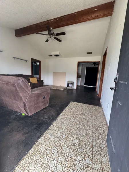 This home sits on exactly one acre. It is barbed wired fenced on three sides and would only need to be finished along the front and a gate added to close it in. 3 bedroom, 2 full baths with the utility room in the house. The home is in need of major cosmetic updates but the bones do appear to be good and it is a great split floor plan. Cash only. The home is part of an estate that has been completely awarded to the seller and cleared through title. Selling as is.