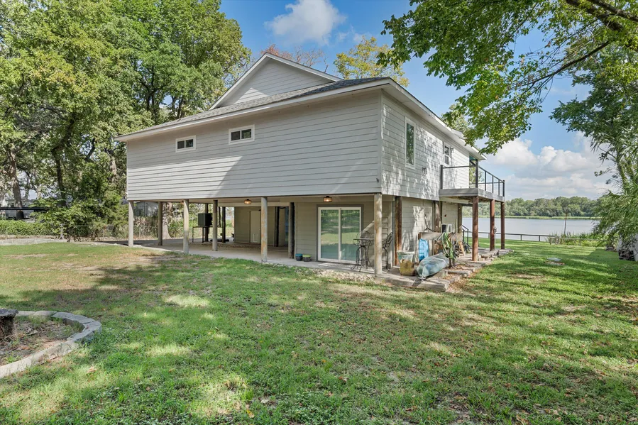Welcome to your dream lakefront retreat! This stunning 3 bed, 3 bath custom-built home spans 2,170 sq. ft. & sits on prime lakefront property. The living areas feature huge windows that overlook the lake, flooding the space with natural light & offering breathtaking sunrise & sunset views. Enjoy the wrap-around deck & relax while soaking in the beauty around you. The split-level design includes a custom guest suite downstairs, perfect for visitors or extended family. The downstairs area also boasts a huge covered patio that overlooks the lake, complete with a firepit for cozy evenings under the stars. Additionally, theres a convenient storage shed built into the lower level, along with covered parking. The main living area upstairs offers 2 bedrooms, 2 bathrooms, & an open-concept layout with butcher block countertops. With energy-efficient features & low maintenance, this home is ideal as a second home, a peaceful retirement haven, or a lucrative Airbnb. Located just 30 minutes from Waco, 1.5 hours from DFW, 2 hours from Austin, & 2.5 hours from Houston, this is the perfect escape with easy access to city amenities. The property includes a boat dock, room for a boat ramp, & endless fishing opportunities right at your doorstep. Some furnishings are negotiabledon't miss out on this must-see lake house!