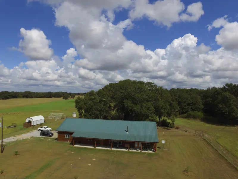 This open concept log home is perfect for large groups and family to spend time in the country together. The log home was built in 2010 from Arkansas logs and sits on five acres. You can see Lake Limestone from the front porch, and the marina is just down the road. The property is in hay production or can be used for grazing. The back yard has huge live oak trees that shade the outside living area and pool.