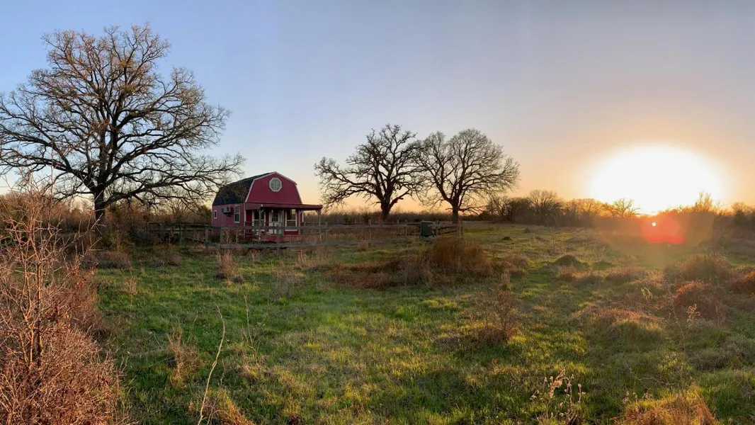 Rolling topography with mature post oaks and various hardwoods throughout.