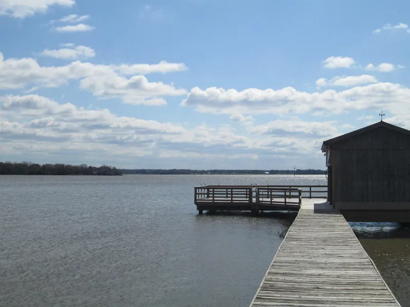 These properties go hand in hand. A waterfront lot with septic, electrical and RV Hookups (.44ac +/-). The pier and boat house has a nice deck perfect for fishing or sunning! The rod holders are already in place, just bring your fishing poles. The off water lot (,5 ac +/-) across the street has a 30x40 concrete floored shop with dual roll up doors, is insulated and houses the onsite water well. The shop's front porch/patio is perfect for the outdoor entertaining everyone loves at the lake. This side of the road also has RV hookups for the extra family and friends. The cabin is a l bedroom and l.5 bath updated bungalow. The property has chain link fencing and sidewalks.