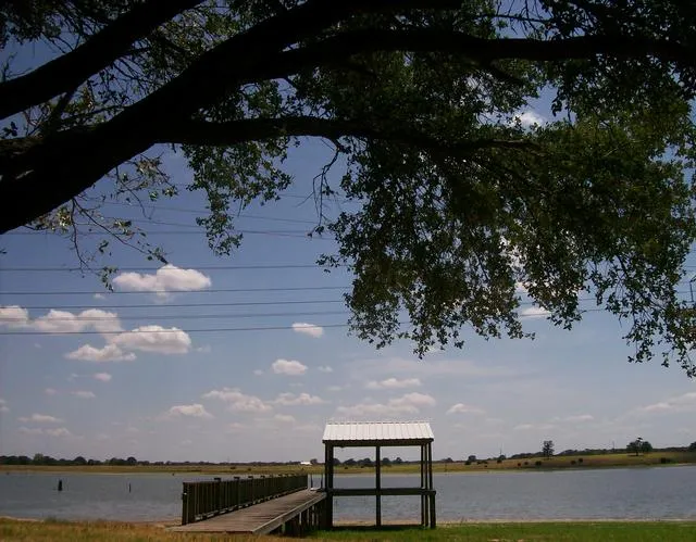 Looking for a really nice affordable home for full time or part time living? Look no more. This nice brick home was built in 1999 on 2 bulkheaded waterfront lots. The home has 3 bedrooms and 2 baths. Master bath has a jetted tub and a separate shower. Also there is a large walk in closet in the master bath. The large kitchen has a large pantry, lots of cabinets, drawers and counter tops. The living area has an inviting wood burning fireplace. Attached 2 car garage with automatic door opener and separate workshop room. The lakeside covered porch has a wonderful breeze and is perfect for relaxing after a long day of playing on the lake. Both lots have large mature oaks and pecan trees. Nice covered pier with boatslip. Great neighborhood - wonderful swimming, fishing and tubing area of the lake. Black top roads all the way to the property. High speed internet is available in this area.