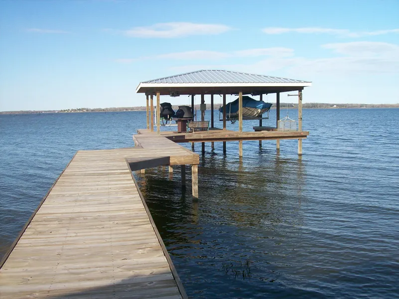 Pier and boathouse built in 2009 is set up with one boat lift and one lift for two jet skis.