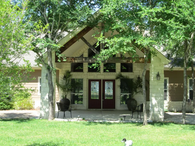 The 1,800 square foot home is a nice combination of Hardie-plank and masonry. Pair that with a wood burning fireplace, exposed rustic ceiling trusses and granite countertops and you have the clean look and feel of the Texas Hill Country. The porches, portico and breezeway give this home a livable 2,800 square feet under roof.