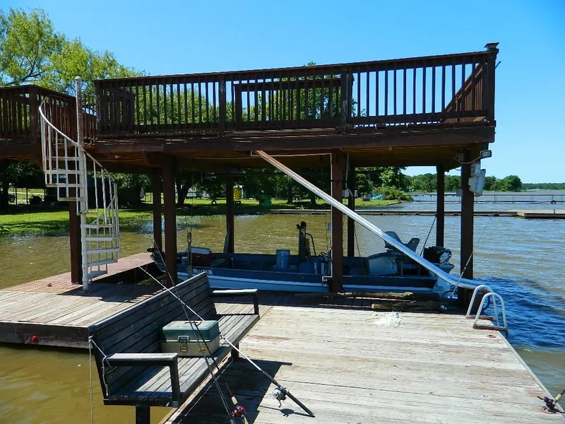 A fisherman's retreat? a weekend paradise? escape from the city? If this is what you are looking for, look no further. Make an appointment to visit this unique waterfront property, set up for 3 RV's, with 2 RV's in place that are included in the sale. There is an aerobic septic system and has community water. There is a 22x22 covered slab, ideal for your outdoor lounge area and BBQ, a fish cleaning station and a new "bathhouse" with sink, toilet and shower-ideal for when you come out of the lake! Easy lake access from your 100 ft pier with boat lift, PLUS soak up the sun on the upstairs deck or throw in a line from the fishing deck below. CONTRACT PENDING!