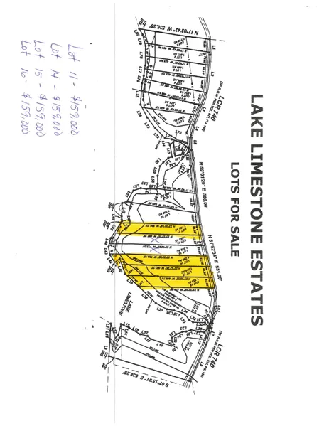 Lot 11, (1.159 Ac), Lot 14, (1.299 ac), Lot 15, (1.21 Ac) and,,Lot 16, (1.123 ac) in new subdivision on West side of Lake Limestone. Partially cleared waterfront lots. Electricity available. Conveniently located near Running Branch Marina.
