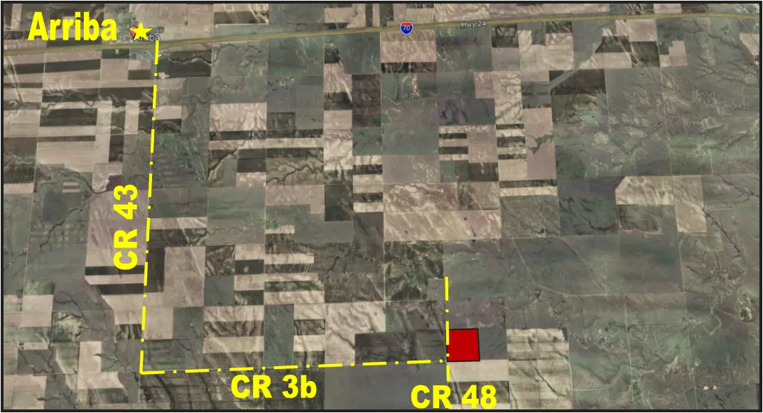 LOCATION: From Arriba, CO take CR 43 South 6 miles. Head East on CR 3b for 5 miles to CR 48. You will be at the SW corner of the property.