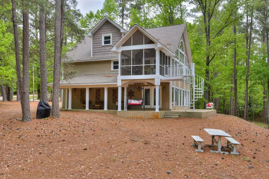 Amazing home with spectacular views from the 3 levels of picture windows on Apalachee Dr in the desirable Soap Creek subdivision. This home features 2 beds/1 bath, great room with wood burning fireplace, and rec room on the bottom level. The main floor mirrors the bottom with the exception of having a kitchen/breakfast room in place of the rec room and a screened in porch with a spiral staircase leading down to the patio and porch. The upper level includes a bath and bedroom that overlooks the main floor. You will love the feel of being on vacation all the time with a short drive to town. The dock is on wheels but