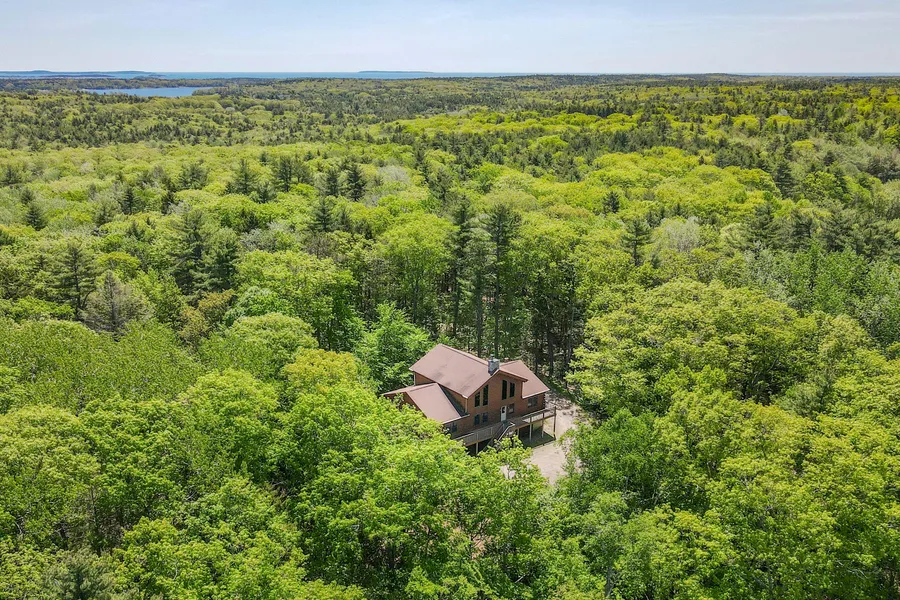 Tucked away on a very private 6 acre lot you'll find this spacious log cabin. The large windows looking out to the trees and cathedral ceilings give the house an open airy feeling but with the warmth of a log cabin. There are 3 bedrooms on the first floor including an en suite primary, a large loft area and a full basement that has enough room for many hobbies. Rock School House Road is a charming rural road that runs between Round Pond Village and Bristol Village. Being in the center of the Pemaquid Peninsula allows you to enjoy all it has to offer.