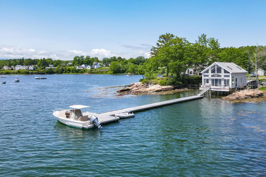 Set on the Northern side of Round Pound Harbor this compact family compound is walking or rowing distance from all the village has to offer. The property includes a boathouse with an 84' long deep water dock and a main house set high with views facing the inner harbor. The boat house is a bright cheerful space with a loft, bathroom and one bedroom and is set up well above the high water and has always been dry. Between the home and the boathouse is a beautiful yard and garden area with a shed to keep your tools. The home itself is a well built and comfortable 3 bedroom 2 bath home that includes an attached heated 2 car garage on the ground level that is big enough to include a shop. There is a first floor bedroom next to the full bath for ease and accessibility as well as a large primary suite on the second floor. There are beautiful views from every window, lovely gardens, and a large p...