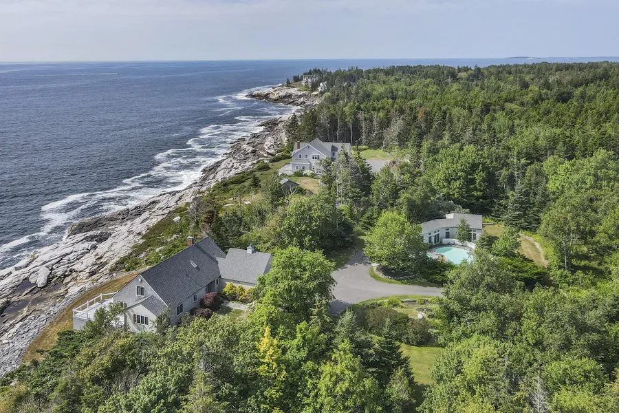 Big bold ocean at it's best! Breathtaking wide angle views out to sea and over the islands all the way to the Camden Hills from this contemporary home located on the tip of the Pemaquid Peninsula. For those coming to Maine to hear the surf breaking on the rocks, smell the ocean, and be constantly entertained by its magic, this is it. Sitting on the edge of a rock formation known as the "Amphitheater" to the fisherman, there is a constant show of nature and boating activity to be enjoyed. The floor layout offers one floor living oriented to take in this view from every room. Two second floor bedrooms and full bath round out the space. Wrap around deck on the ocean side. Large attached two car garage with storage above. Fenced in pool with separate soaking hot pool. Accompanying 879' pool house which also acts as a guest house. Quiet neighborhood setting at the end of a dead end road. Prop...