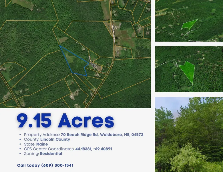 Embrace the beauty of rural living with this exceptional 9.15-acre residential lot located at 70 Beech Ridge Rd in Waldoboro, ME. Nestled in Lincoln County, this wooded property offers ample space and privacy, just a few minutes' drive to the stunning Damariscotta Lake and only 13 minutes north of downtown Waldoboro.