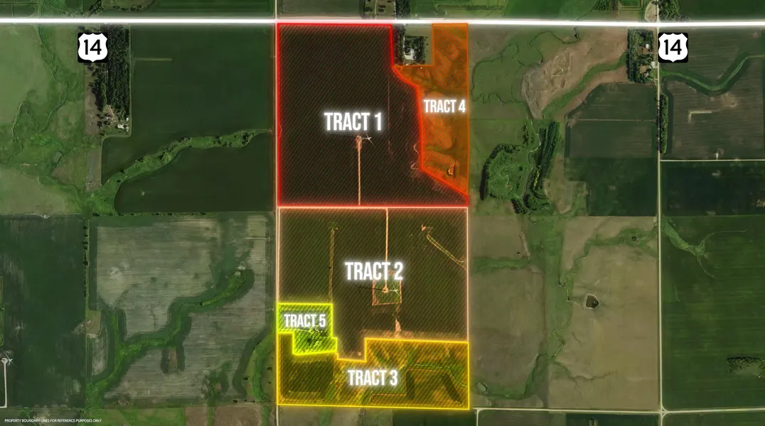 Tract 3 50.51 +/- Acres; Tillable & Grass Tract: This smaller tract features approximately 22.96 cropland acres with a soil rating of 81.4, primarily Vienna-Brookings Complex soils (per FSA and Surety AgriData). PLC yields are 153 for corn and 47 for soybeans. The balance is comprised of fenced grassland with a creek-fed water source and a dugout. Access is available on the west side and SE corner for the grass. This tract adjoins Tracts 2 and 5, bordering the acreage to the south, and is located less than one mile south of Hwy. 14.