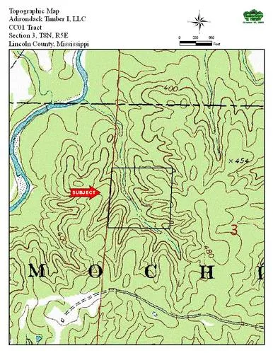 Location: The property is located in northwest Lincoln County adjacent to the Homochitto National Forest. It is situated near Loyd Star and is about 2 miles north of Hwy 503. It is located off Coleman Lea lane. The legal description is the SW1/4 of NW1/4 Section 3, T8N, R5E, Lincoln County.
