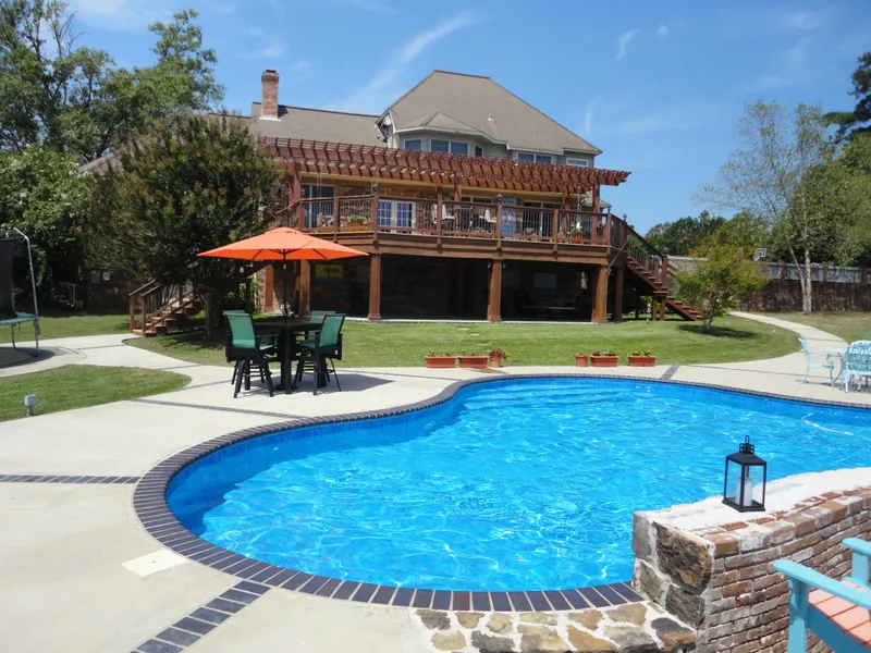 Custom built executive home located in Oak Hill Estates. This home features 4 bedrooms and a bonus room above the garage that is currently being used as a fifth bedroom. The home has 3 full bathrooms and 2 half bathrooms. The home offers a total of 4,154 square feet but 504 of the square footage is in the finished basement. Other features include heart pine wood flooring, ceramic tile flooring, travertine flooring in the master bathroom, ceramic tile counter tops, spacious den with wood burning fireplace and vaulted ceiling, large sunroom overlooking a two story deck which overlooks a beautiful salt water pool a patio. The home also features a large garage with two garage doors, a 140' custom built zip line complete with elevated platform, irrigation system in both front and back yards, custom built play set for children, 101 planted Live Oak Trees line both sides of the drive and property lines in the back yard, French Drains along the front of the house. The lake is stocked with Bass, Bream, Crappie, and Catfish.