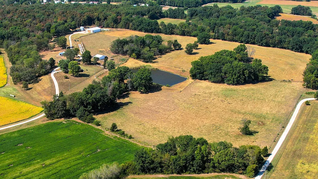Set at the top of a bluff overlooking the Cuivre River Valley, amidst gently rolling farmland and rich bottom ground, the stately centerpiece is a 1,827 sq. ft. all-brick home featuring 3 bedrooms, 2 baths, a two-car garage, and a partially finished, walk-out basement. Surrounded by open skies and pastoral views, the residence offers a timeless foundation for family gatherings and rural living.
