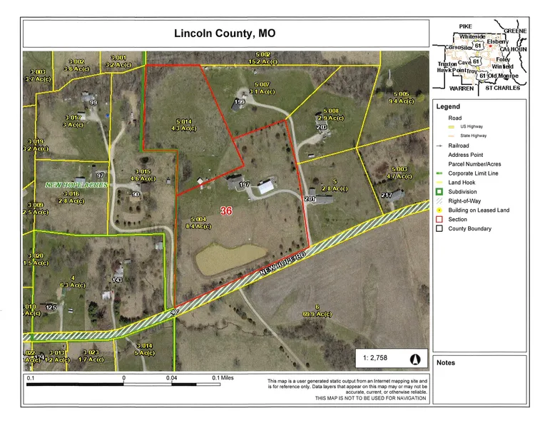 Research Parcel InformationFrom Troy. take Highway 61 to Highway B, make a right on Highway B towards Elsberry, make a right on Highway W, left on New Hope Road and then property is on the right.