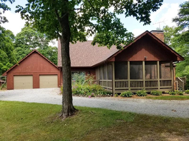 Custom Built 3 bedroom, 2 Full & 2 Half Bath, 1.5 story home on 13.55+/- acres offers a private country setting and 2,250 Sq. Ft. Total Finished Living Area. New roof, gutters and screens in Nov. 2015. Over-sized detached 2 car garage. Screened in front porch (furniture stays). Main floor laundry. 6 panel doors throughout home. Spacious master-suite provides a peaceful retreat with gorgeous views out the back windows and spacious walk-in closet. Master bath has separate shower & whirlpool tub. Geo-thermal heating and cooling system for very economical utility bills. Family room includes gas fireplace and sliding glass doors to wrap around deck. Finished lower level walkout features a brick surround wood burning fireplace with firewood inserts. Tax records are based on previous home. This home was totally rebuilt in 1996 and square footage is higher than tax records state. Make your appointment today.
