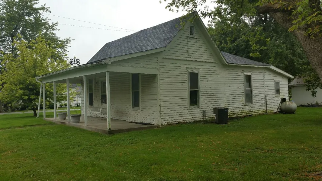 ATTENTION INVESTORS: Excellent rental opportunity! With some TLC this place has tons of potential! Bungalow with charm & beauty. One of the first homes built in Hawk Point and first time on market .. The home has 2 large Bedrooms and one Large bath with huge laundry closet, Big County Kitchen lots of cabinets and nice sized pantry, the fridge, electric stove, microwave hood, washer & dryer stay. Attic fan to save on those electric bills , Beautiful ORIGINAL Hardwood floors, Mostly original wood work, detached 20x32 garage with concrete & electric, several small outbuildings Newer roof, furnace & air, hot water heater, Covered front porch with porch swing and Huge Mud room /laundry area. Sits on corner with 3 City lots which have several fruit and shade trees. Property is being sold AS IS. Seller will make no repairs as a result of inspections. Buyer may purchase and perform inspections, ...