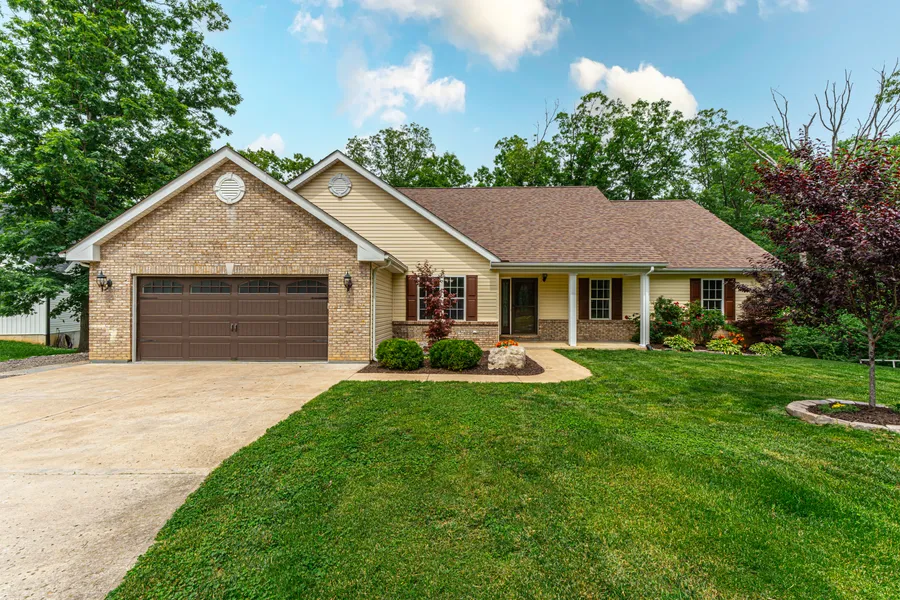 Stunning & spacious 5 bedroom, 3 full bath atrium ranch on 3 acres w/ pond & amazing, private views! Features a vaulted, open, and airy floor plan, new carpet & freshly painted interior! Spacious entry foyer walks past the formal dining room into the large, great room w/ fireplace & built-in shelving, overlooking the open staircase, wall of windows & amazing view! Large vaulted kitchen & breakfast room including granite countertops, stainless appliances & ceramic flooring. The breakfast room walks out to the upper-level deck. Vaulted & spacious main floor primary bedroom w/ views boasts a walk-in closet & vaulted primary bath featuring separate tub & shower. The main floor features two more bedrooms & vaulted full bath. The lower level walks out & features a large family room w expansive windows, new flooring, a 2nd fireplace and 2 more large bedrooms with a full bath. Two-car garage and...