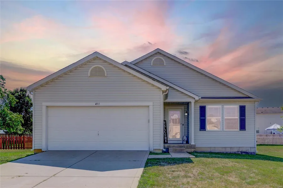 Open Floor plan. Main Floor Laundry, Owners suite with tub/shower combo. Spacious rooms. SELLER WILL ESCROW FLOORING CREDIT - Buyer can choose the type of new Kitchen flooring to be installed before or after closing. UPDATES INCLUDE: Radon System Installed - New Microwave - New Dishwasher - New Refrigerator - New Garbage disposal - NEW HOT WATER HEATER - New steps added off of back door - New Storm Door installed on front door - Reverse Osmosis filter system installed in kitchen - Bar top installed above sink Butcher Block installed on island - Closet doors installed on all closets and pantry - Lights and ceiling fans installed in all bedrooms Shiplap wall installed in living room - Windows cased out in living room and kitchen - Pallet wall installed in spare bedroom Workbench and shelves built in garage - Whole house was painted in 2018 - Front door and Shutters painted in summer of 2021 LED lights installed throughout house, garage and basement. Nice peaceful neighborhood.