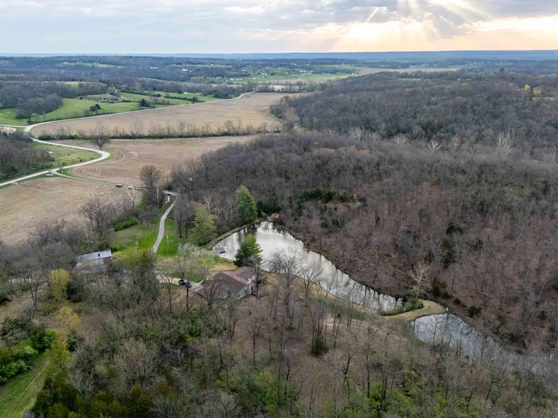 As you turn off the county road, a short gravel drive leads you through the gated entrance, over Little Sandy Creek, and onto a blacktop driveway that ends at the home. The residence, a 3-bedroom, 2-bathroom house with over 2,100 sq ft of living space, a unfinished basement and attached garage is ideal for full time living, weekend getaways, or even a hunting lodge. A wrap around deck offers breathtaking views of the pond and the Little Sandy Creek bottom.