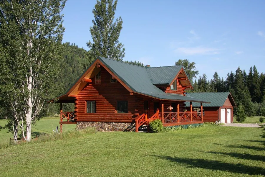 Lake Creek Get-a-Way. Handcrafted Amish log home on 8 acres with 291' of Lake Creek frontage. This 3 bedroom, 2 bath log home has cathedral ceilings, red oak hardwood flooring, black walnut kitchen cabinets, stairways & walls. Stone fireplace with vent free propane insert. Main floor has kitchen, great room, dining room, bedroom, pantry, laundry room & covered front & back porches. The loft is set up as a bedroom. A finished, walk-out basement with bedroom, bath, office space, pantry & covered patio. Sit on the porch and watch the wildlife in the large meadow. Close to USFS access & Stimson Lumber Co land across the creek. This is a beautiful property & home.