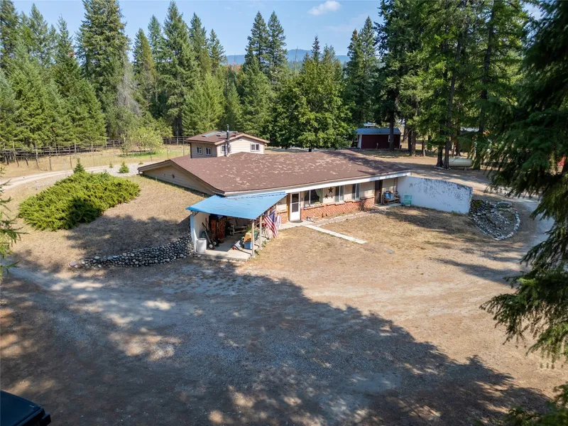 End of road private 5 acres, Earth Contact home with an atrium in the center. One of a kind, 4 bedrooms, 2.5 bath home. Includes atrium, office, kitchen and dining area, open living room. Several outbuilding, including a Quison hut garage, concrete floor, drive through doors, with 1/2 bath. Dry Tiny home, with power that could be updated with water and sewer, 3 bay covered storage building, 2 covered woodsheds and a chicken coop with run. Well house. Fenced garden with fruit trees. RV hook up. This one-of-a-kind property and home could be your next private residence, family compound, or commercial venture.
