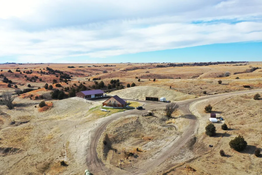 Located East and North of Curtis, Nebraska is a picturesque property sitting on a quarter section of rangeland with awesome views of the Southern Lincoln County landscape. Access to the property is via excellent county maintained roads. The 3,500+ sqft. home was built in 2022 by the current Owner. It is constructed with a metal roof and wood logs that have been milled and squared for the perfect fit. Trees from the property were used to construct many of the wood features. This gorgeous log home sits on a hill with good water drainage from rain or snow. The shop was built in 2024 with all the best products and an excellent layout. The shop is plumbed and ready for a bathroom with running water and a sink. It is completely insulated with a like new cement floor. The West side of the shop could also be used for a horse barn if so needed. All in all, this property is amazing from the way it...
