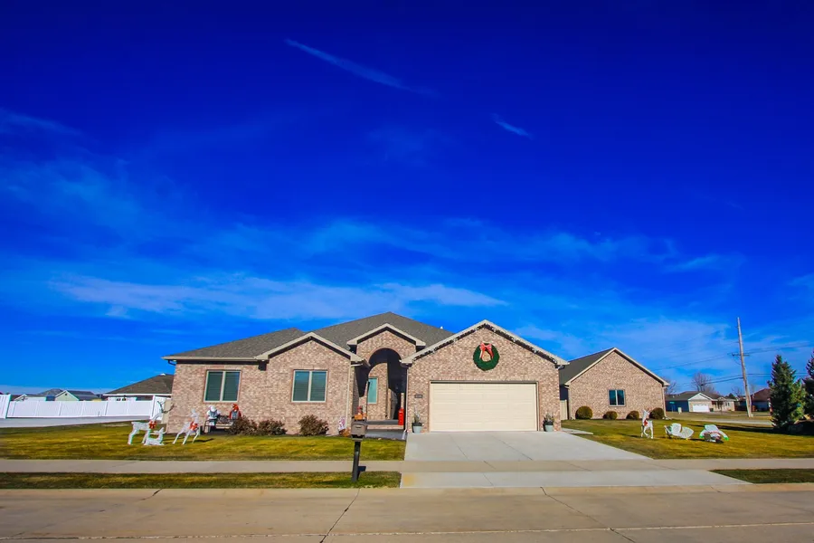 CORNER LOT .52 ACRE. RANCH BRICK. 3 SEPRATE LIVING AREAS. DETACHED 30X40 SHOP FINISHED WITH UPSTAIRS AREA FOR STORAGE. OUTDOOR AREA WITH COVERED PATIO. DECK. ABOVE GROUND POOL. HOT TUB. FENCED. BEAUTIFUL WATER FEATURE. NEW CUSTOM AUTOMATIC KITCHEN WINDOW COVERINGS. LARGE KITCHEN. LARGE ISLAND. DINING NOOK ACCESSIBLE TO OUTDOOR AREA. WALK IN PANTRY. TANKLESS WATER HEATER. Floorplan offers area for extended guest allowing privacy & independence.
