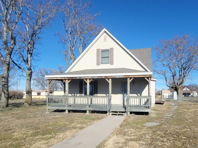 UPDATED STORY AND A HALF CHARMER ON CORNER LOT!! This home has been thoughtfully refreshed while preserving its original character. You will enjoy the tall ceilings, beautiful staircase, formal dining room, welcoming south facing covered porch, columns and wide trim to mention just a few of the original details. Updates include; new roof in 2024, all new flooring, and paint, new kitchen cabinets, new deck. Back yard is fenced in with plenty of parking space. Nice storage shed with roll up door included.