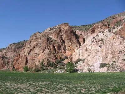 Rainbow Canyon is named for its spectacular rainbow colored rock walls. Meadow Valley Wash, a year-round spring fed stream, waters thousands of trees along its banks as it flows through the canyon. Ancient Indians inhabited the canyon and artifacts recovered from caves carbon date their occupation to 5,000 years ago. In the 1870s the early pioneer settlers established ranches in the canyon to supply beef, fruit and vegetables to the surrounding mining towns. Apple and pear orchards from that era still produce abundant fruit in the canyon. Also, Kershaw-Ryan State Park, approximately 5 miles north of the ranch is famous for the grapevines that cover the parks canyon walls. The grapevines have also survived from earlier times when the ranchers grew fruit for the mining towns.