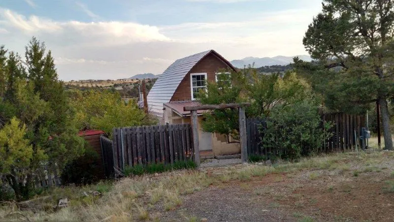 Cute little cabin on over 1 1/2 acres with beautiful Mnt. views. Home is on Capitan water but has it's own, not great, well for watering. Seller doesn't warrant the well. 2 storage buildings and a pump house w/additional storage inside house. House still needs a bit of trim out but would make a terrific starter home.