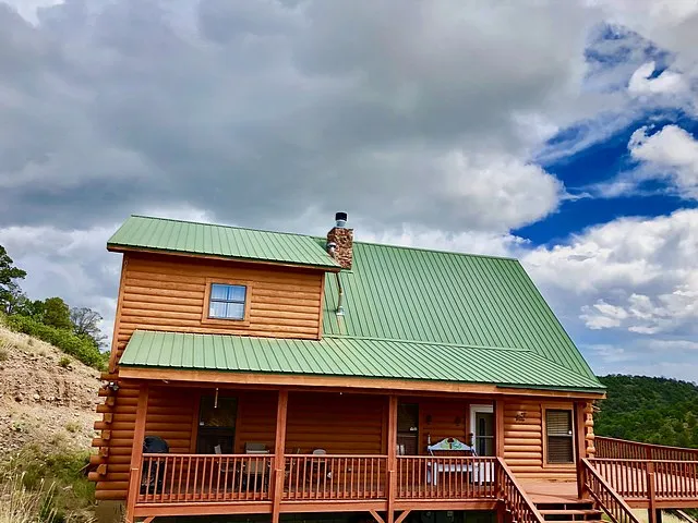 Secluded, custom log cabin w/ fabulous mountain views and quiet seclusion. Great mountain atmosphere, super hideaway with private hot tub and huge decks on 8.5 acres (additional 5 to 12.5 acres adjoining and available). Soaring ceilings, beautiful fireplace, A/C.