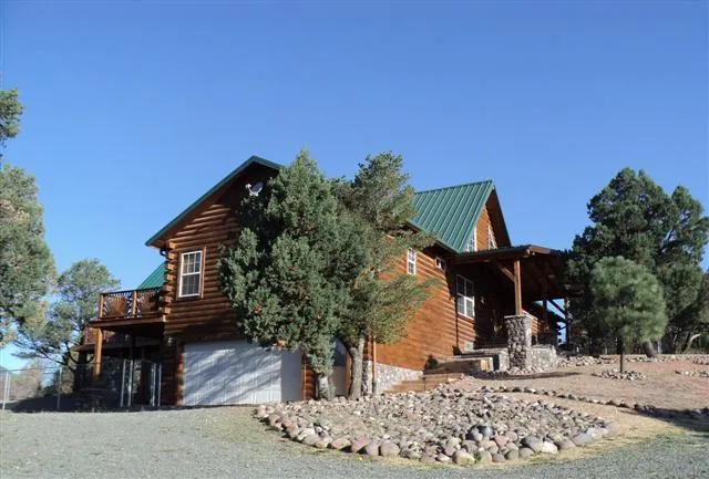 Real log home on 5 acres w/creek. Stunning & custom features throughout includes massive river rock firplace, high ceilings, custom kitchen & baths, beautiful wood work on floor, ceilings, & walls, great decks & walkways, so much more. Large RV garage w/storage loft & 600 SF heated apartment w/kitchen, bath, bedroom, office, living room that is not included in stated SF. Fencing + yard fence. Nice Sierra Blanca views.