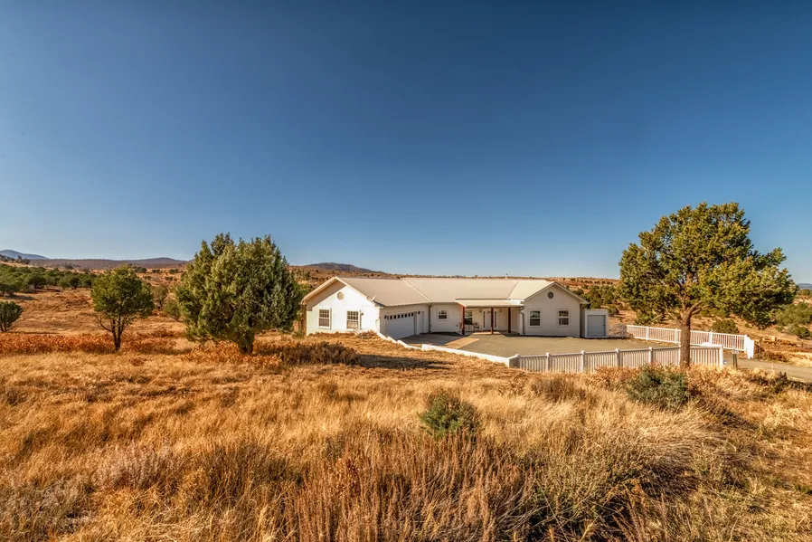 Spacious, newer, one level home with views on 2.5 acres! The open concept living, dining, kitchen with stainless steel appliances & granite countertops opens to a large covered deck on the back of the house with mountain views. Large secluded master suite & a 2 bedroom 1 bath guest wing. Exterior is stucco with a secluded master suite & a 2 car garage. Decorative paint colors have been used throughout.