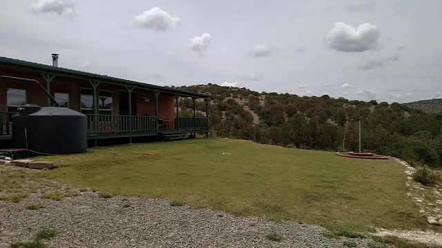 Drifting along with the tumble weeds and across the arroyo describes this darling property! This 3 BA/2 BA home has a charming lay out wioth wood stove, hard florring and an updated kitchen. Sit and enjoy your view of the Capitans off the front porch. Comes with 37.943 acres, a 3 car detached garage, greenhouse, 2-1500 gal rain water collection tanks amnd a well-250 ft with 20 GPM yield. Click on video preview link below pctures for Drone video.