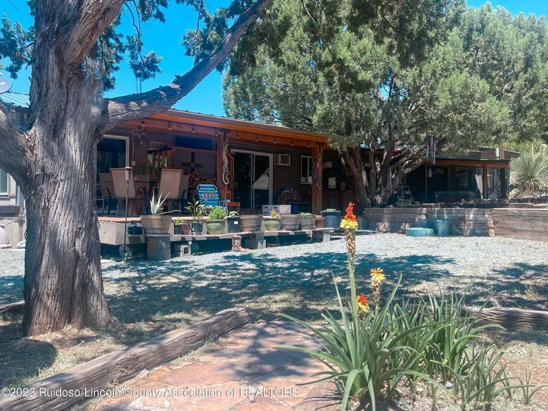 Peaceful relaxation is the name of the game at this secluded property! Enjoy an enormous 30x40 garage & heated workshop, new front deck w/ metal roof, serene landscaping, ample storage, and a custom chicken coop — chickens included. 3 spacious bedrooms & a private hot tub await the new owners of this comfortable home, w/ SIP-panel insulation for high-elevation winter comfort. The natural-gas furnace works well... but the wood-burning stove will keep the house warm. Nestled in a quiet valley, this home is a great spot to get away from the hustle and bustle, kick back, grill up some BBQ & watch the Capitan Mountains out the window as they change color at sunset, orange to pink to purple. If you're looking for the privacy of the country with quick & easy access to Ruidoso, this is your spot.