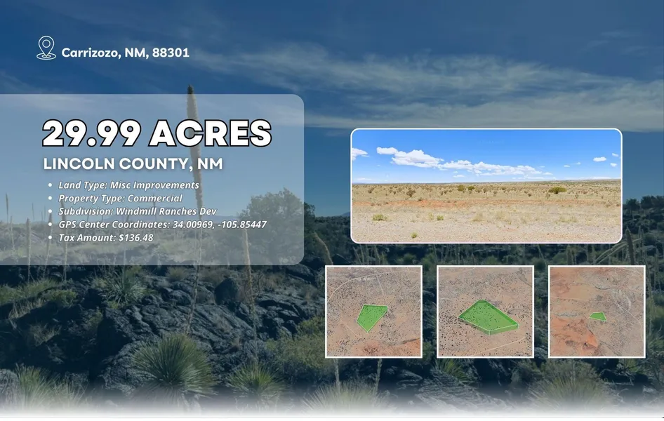Discover wide-open spaces and endless New Mexico skies on this 29.99-acre parcel in the quiet community of Corona. Perfect for those seeking peace, privacy, and panoramic mountain views, this property offers plenty of room for your dream home, ranch, or weekend getaway. Enjoy the beauty of rural living with easy access to Highway 54 and nearby small-town conveniences. Whether you're looking to invest in land, start a homestead, or simply escape the city, this expansive property captures the best of the Southwest's open range.