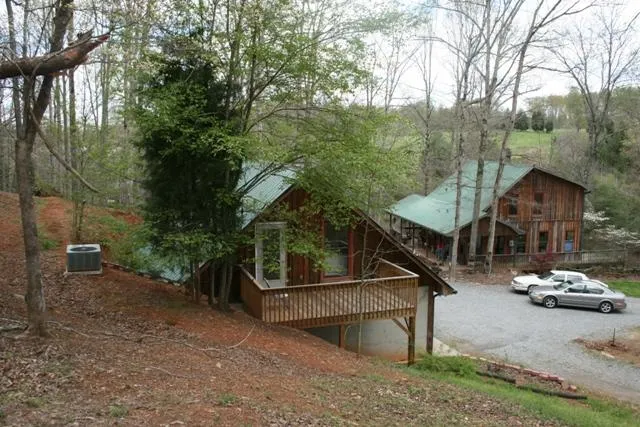 Serene getaway! Two story rustic fascade; built of cypress, sits on stilts as land slopes to creek. The house itself is 3 bedrooms and has over 1000 sq feet of porches to enjoy the outdoors and listen to nature.