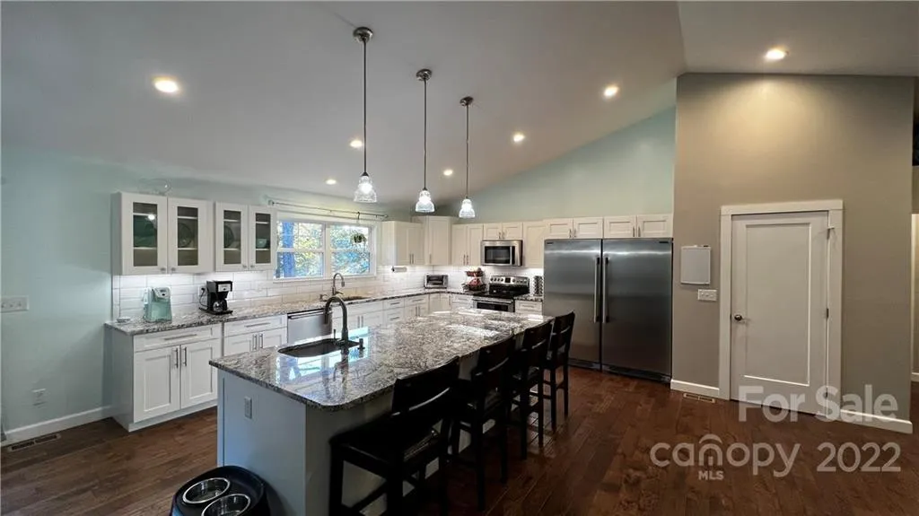 Stunning custom home on unrestricted 3.5 wooded & private acres just minutes from downtown Lincolnton & hwy 321. Beautiful landscaping with something blooming constantly throughout the year greets you as you walk onto the large covered porch. A chef's dream awaits in the extensive open kitchen with two sinks, professional series appliances, full size side-by-side frig & freezer, and a solid-slab granite breakfast bar over 9' long! Real hand-scraped oak wood floors throughout the main area, custom tile and granite in bathrooms, and huge shower in primary bathroom with double shower heads. 4 full bedrooms plus another room that could be used as an office or additional bedroom. Finished heated and cooled space over garage is not counted in HLA as center height is only 6.5' tall. Full RV hookup and oversized garage are just some of the extra features this beautiful home boasts. Plenty of spa...