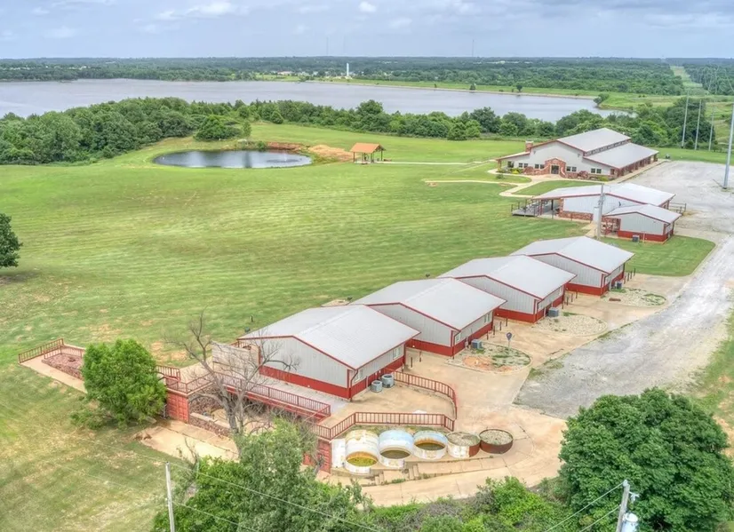 Rare opportunity to own one of Oklahoma’s finest all-inclusive wedding and event venues! Enter LAKEVIEW RIDGE! This pristine 18 acre property is tucked away amidst Oklahoma’s scenic landscape, just a few miles northwest of Chandler and I-44. It is positioned perfectly between Oklahoma City and Tulsa. Lakeview Ridge stands as a testament to timeless elegance seamlessly intertwined with the beauty of nature. This gorgeous multipurpose event center offers both seclusion and convenience with two different venue sites (indoor & outdoor venue options), plus six fully-furnished rustic lakeside cabins! The Main Lodge is 8,000 sq ft, followed by The Ranch House Venue at 2,000. Lakeview Ridge is not only a venue, but is also set up for full-time residency.