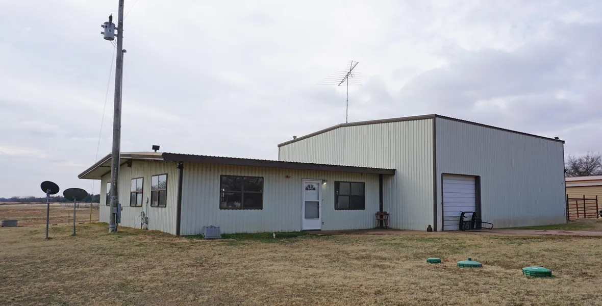 2 bed 1 bath barn/home has open kitchen, dining, living area, central heat and air and covered patio. Adjoining 40 X 40 barn/shop that has one car garage, 3 stalls, office area, work area and overhead storage.