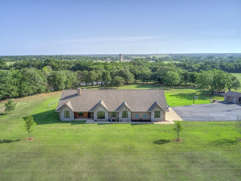 20 +/- Gorgeous Acres with Unmatched Seclusion between OKC and Tulsa about 7 miles North of the Chandler exit. The Exquisite 3,675 sf Custom Luxury Home is perched atop the crest of the hill on a private asphalt drive, overlooking the fully stocked pond. You have to see the quality and the thought that went into this place, you can tell it was built by a skilled carpenter. It has the perfect open floor plan with amazing outbuildings. The finished-out garage and oversized patio is perfect for family gatherings. The garage can be heated and cooled and is perfect for large parties, playing pool, watching a football game or whatever your family desires! Tons of room to spread out, fish, cook out and play outdoor games with family!