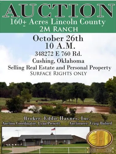 OCT. 26, 10:00 a.m. 348272 E 760 Rd. Cushing, Oklahoma, 1 mile north of Agra on Hwy 18, 5 Miles East on Road 760