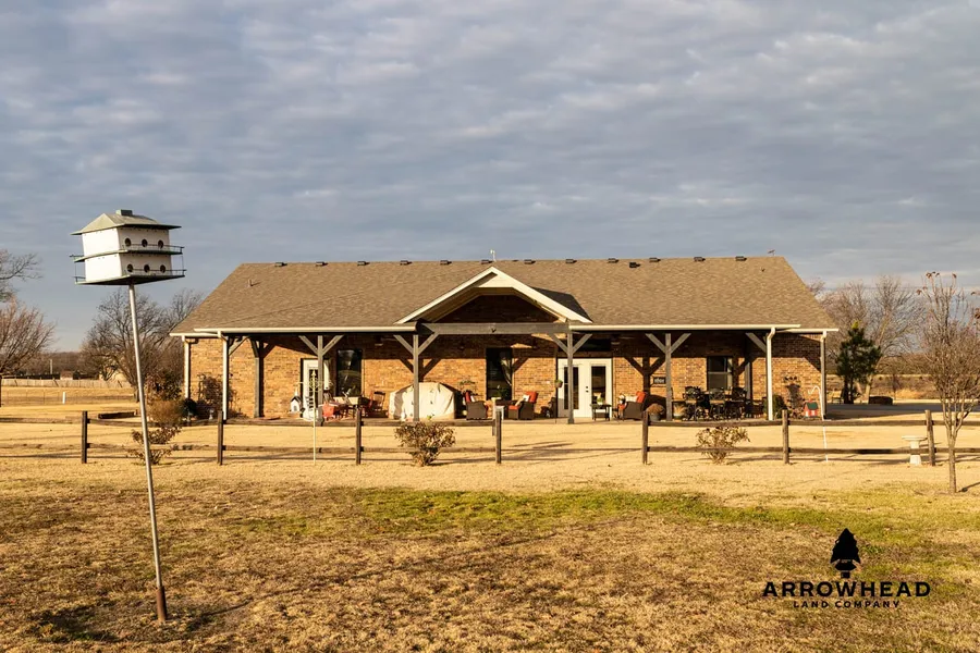 PRICE REDUCED! Situated conveniently off of HWY 99 sits one of the most well maintained immaculate homesteads in all of Lincoln County. This property has been taken care of at the highest levels of pride and there isn’t a weed in a fence line or crooked post on the grounds. The home on the inside carries the same jaw dropping appearance and is paired to the country well with a touch of western cowboy influence. This 4 bedroom 2.5 bath 2 car garage home is trimmed with knotty alder wood and is full of well organized space. The large living room has a wonderful stone (gas lit) fireplace and an open floor plan for spending quality time with family. The master bedroom features a walk out door to the porch, spacious master bathroom with jacuzzi tub and standing tile shower, and large walk in closet space. There are two other guest bedrooms that share a jack n’ jill bathroom as well as another guest bedroom with 4 custom built bunk beds. A large well lit office near the front entrance is a staple of this home and great for someone working from home. The eastward facing full length concrete porch is a great way to watch the sunrise with coffee and grill out in the shade during the hot summer sun. There is also a fully furnished ground storm cellar easily accessible on the back porch as well. A new aerobic septic system was installed in 2022 and functions as it should. The home sits over the top of a geothermal floor that is synced with the thermostat to greatly reduce heating and cooling cost. The HVAC heating and air conditioning units were replaced in 2023 and the roof was recently replaced in 2022 also. To the north of the wonderful home sits a recently built 30x40 shop complete with concrete floors, power shop door, and 220v/110v electrical hookups. This is great for housing the farm truck, tractor, mowers, and utv. The west side of the property has another 50/50 metal barn with sliding doors that is weather tight and great for storage, horse tack and equipment, or bulk feed storage. Looking out over the land, this property is perfect for someone who has a small cow calf operation or a stable full of horses. There is roughly 53.34 acres of organized grazing with well kept native grass and separate crab-grass pasture traps. The 7 acre trap near the working pens, squeeze chute, and stable is perfect for a rodeo arena or roping pens. All of the pastures have ample water and access to grazing. The northeast corner of the property has a great 1.75 acre food plot with a feeder and wet weather pond. Good whitetail deer numbers are found here coming from the section of raw land and habitat to the east. There is minimal to no hunting pressure on any of the neighboring properties. On the east fenceline there is a 100yd berm and dirt area that would be perfect for a well designed shooting range and safety backdrop. With no neighbors and the sound contained by the dirt berms and trees this would be a great place for some family fun and target shooting. Sitting just west of the house is a beautiful acre fishing pond that’s a great place to watch the sun go down and wet a line. It’s stocked with bass, bluegill, and channel catfish. East of the house near the livestock pens also sits the water well house, that produces at 25 gpm, and a leveled gravel pad with camper hookup. All showings are by appointment only. If you would like more information or would like to schedule a private viewing please contact Drew Palmer at 620-660-2355 Arrowhead Land Company listing agent.