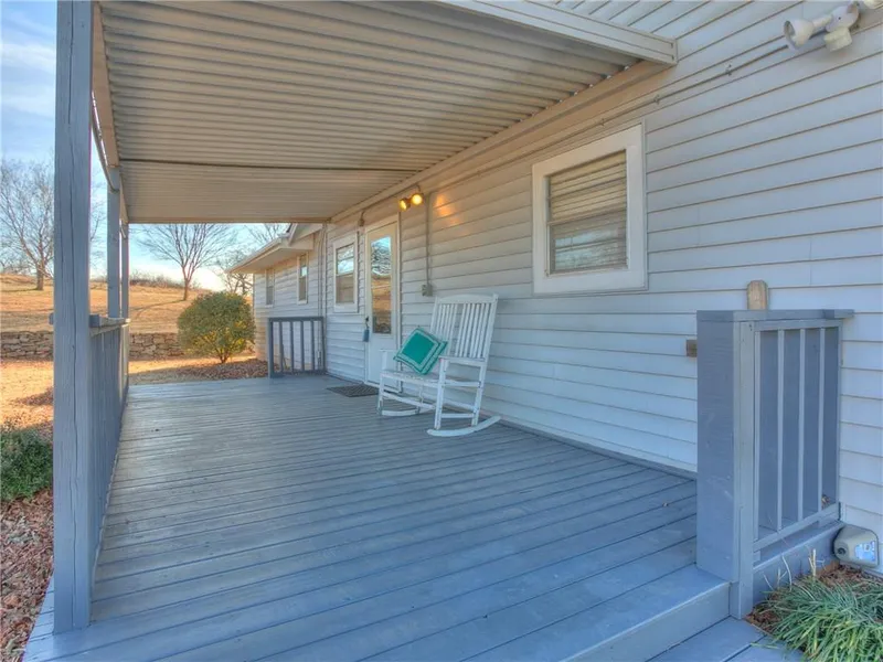 Charming updated home with 3 baths and 3 bedrooms! Master bedroom has own bath with tiled shower; 2nd bedroom also has its own bath with tiled shower. Hall bath with tub/shower next to 3rd bedroom. Large kitchen with lots of counter space & cabinets; pantry plus large island. Living room features a free standing gas log fireplace. Formal dining could be an open office or extended living area. 62 x 70 metal building with full bath in an area that originally was intended to be finished into living quarters. 220; semi-truck smoke stack vent to outside offers opportunity to work on semi; garage dr opener; lots of storage, shop lights, 3 overhead doors; east end has 3 sided equipment storage with dirt floor. 2.5 car detached metal garage with 2 overhead door and opener; work bench. Concrete sidewalk to home. In ground storm shelter. Home & buildings sit up high off road to catch the breezes and enjoy Oklahoma's gorgeous sunsets! Buyer to verify school district and all info provided.