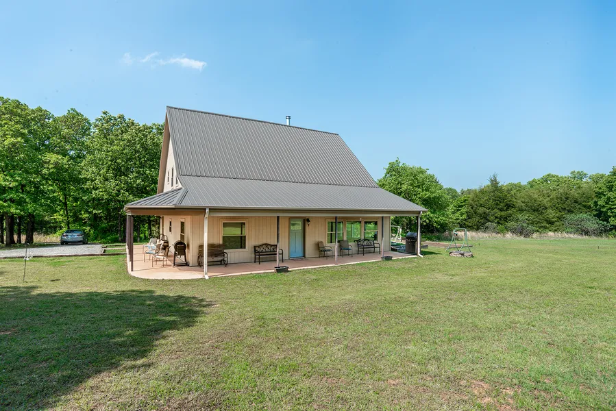Main home is bright, with open floor plan, living room features 12 ft of windows on east and south walls. To keep you cozy there is a Vermont Casing wood stove. Lovely kitchen features lots of beautiful cabinets with granite counters, soft close hinges and large pull out drawers for bigger pots. All appliances stay with no warranty. This is a very well built home with lots of attention paid to detail, it has 2 x 6 walls, pex plumbing inside pvc pipe, 2 HVAC systems one upstairs and one down. HW heater and pressure tank are under the stairwell. Water well produces 10 gallons per minute and is PH balanced. Outside you have a wrap around porch with a swing to sit in and enjoy the humming birds, turkeys, deer and more. There a many walking trails through the woods, active spring and raised garden beds, storm shelter and dog pen.