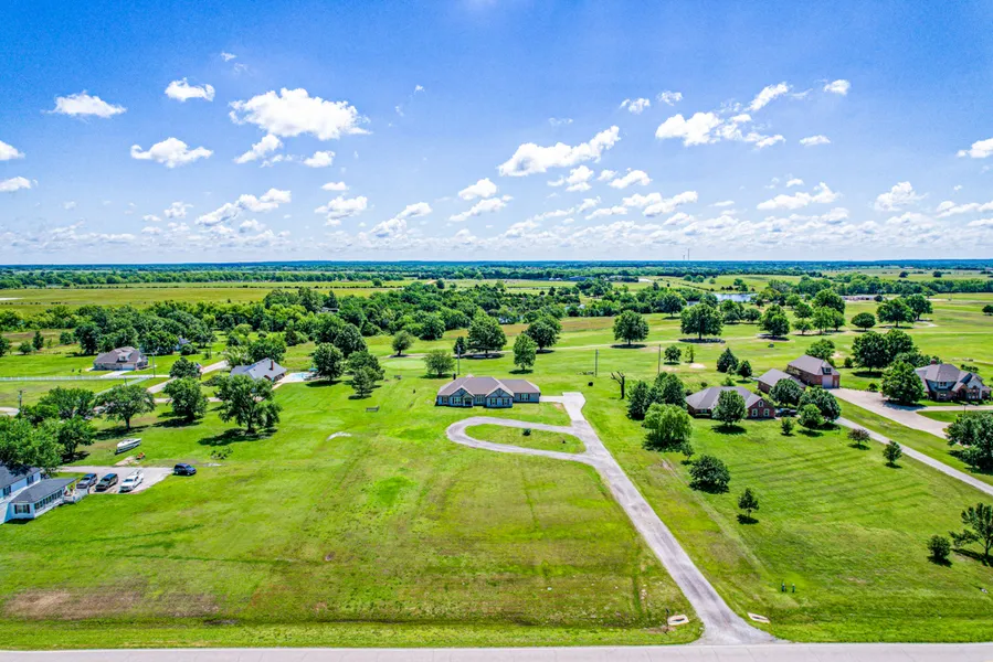 Stunning custom-built home, completed in November 2020, located on 2.3 +/- peaceful acres with direct frontage on Hole 3 of the Stroud Golf Course. Offering 2,635 square feet of beautifully designed living space, this 4 bedroom, 2.5 bathroom home also features a dedicated theatre room, formal dining area, and a 2-car garage with its own heat and air. The open-concept layout showcases tall ceilings, a gas fireplace, and expansive windows that provide gorgeous views of the course, creating a bright and welcoming atmosphere throughout.